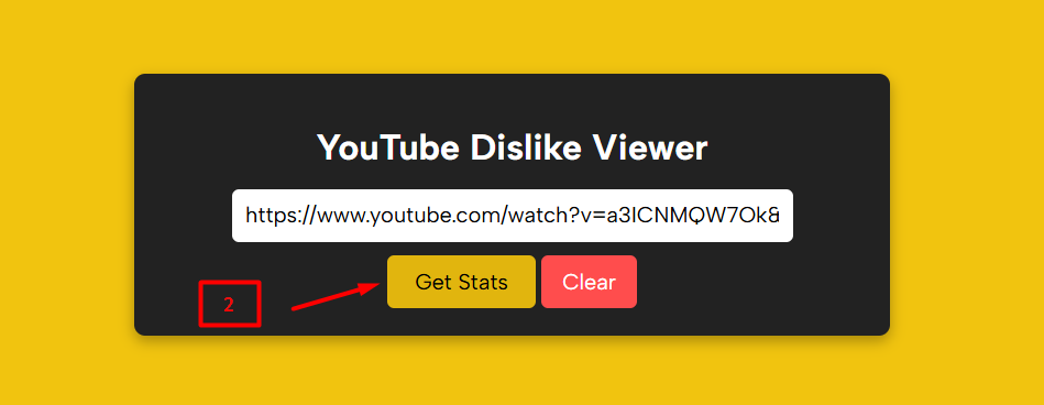 Once the link is in place, click the yellow “Get Stats” button. The tool will retrieve and display the video’s key engagement metrics.